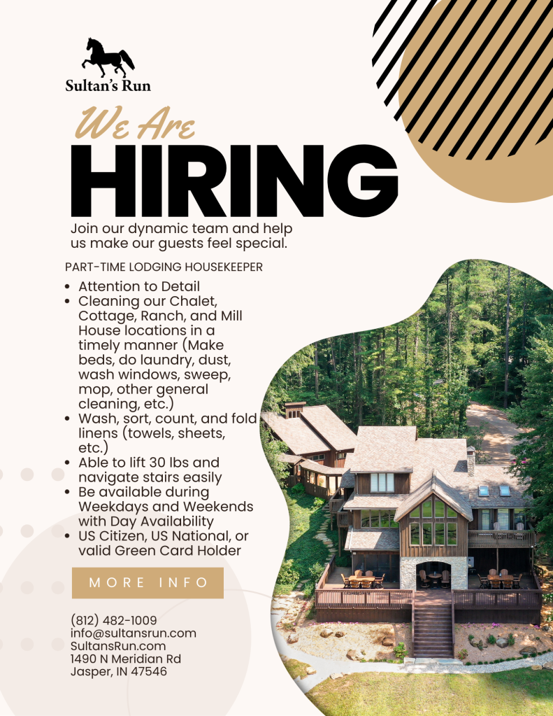 Want to join Distinguished Golf Destination Sultan’s Run’s friendly and welcoming staff? Help us make our guests feel special and apply to be a Lodging Housekeeper today!