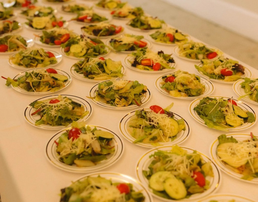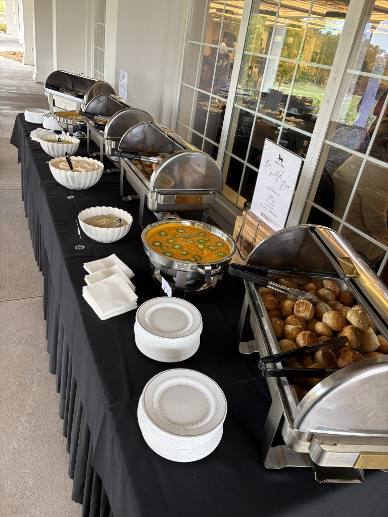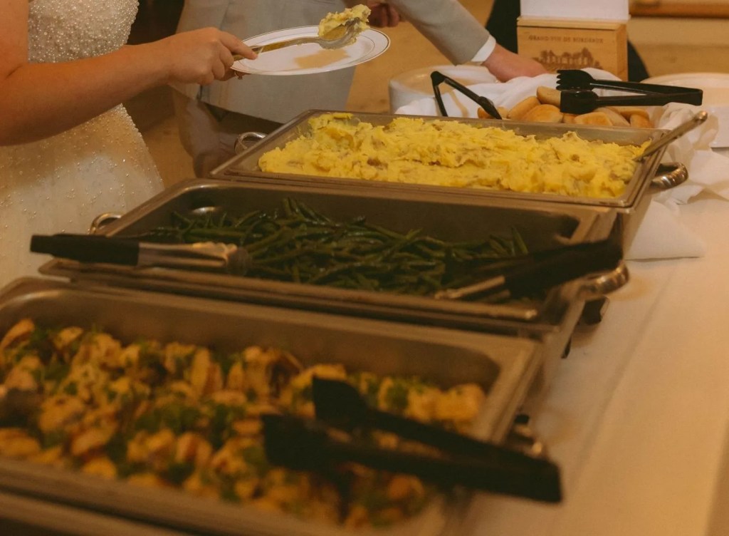 - Two-entrée standard banquet buffet, plus a choice of two sides, seasonal green salad, and assorted bread with butter and soft drink package